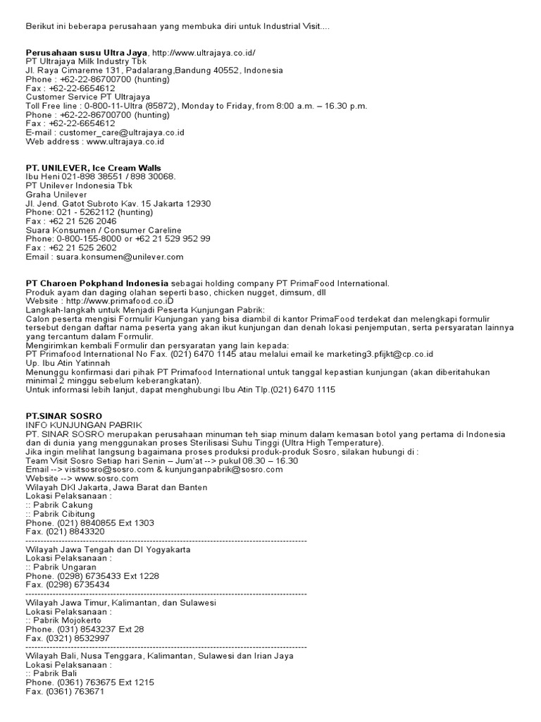 Uncategorized Alamat Email Pt Indofood Padalarang Adapun alamat indofood saat ini berkantor pusat di sudirmanplaza indofood tower lantai 21 jl Share with email opens mail client